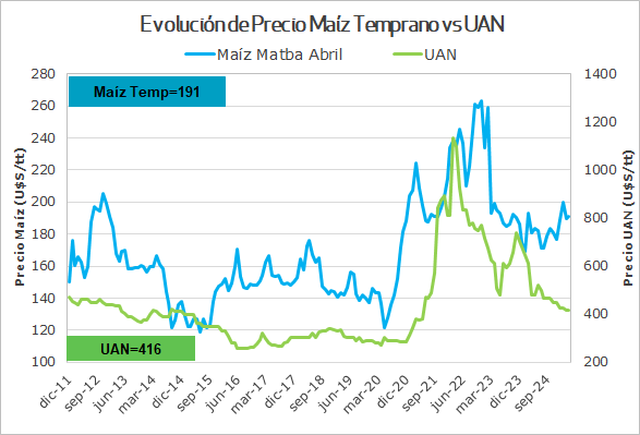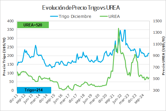 Por otro lado, los precios de los fertilizantes nitrogenados, especialmente la urea, experimentaron un incremento. Esta subida está relacionada con el aumento de los precios internacionales, respaldado por una mayor demanda. Además, la guerra comercial podría tener impacto en los valores internacionales, ya que China es uno de los principales proveedores de este insumo para los Estados Unidos.