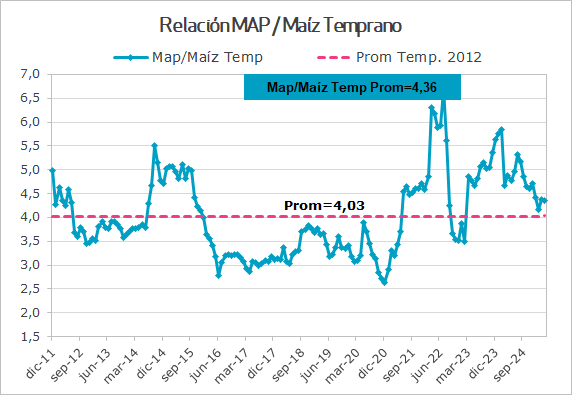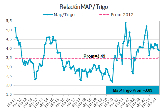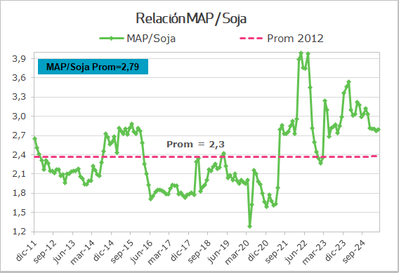 En cuanto a los fertilizantes, los precios de los fosfatados permanecieron prácticamente estables durante el último mes. Estos precios continúan bajos, pero se prevé una tendencia alcista, con expectativas de que las importaciones hacia mayo reflejen valores superiores a los actuales.