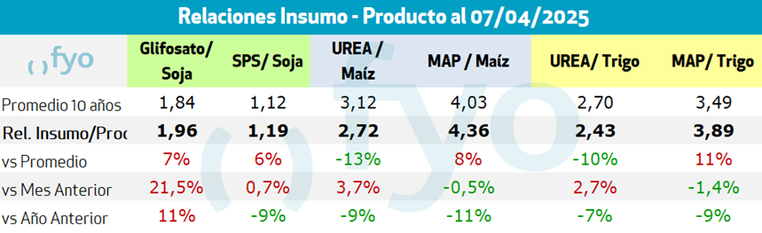 Durante el mes de marzo, el mercado de insumos experimentó un notable dinamismo en comparación con los promedios para dicho mes. La relación insumo/producto fue favorable en los inicios de la precampaña de la fina, con una intención de siembra de trigo que, de manera incipiente, parece ser superior a la del año pasado. Además, los perfiles de suelo se encuentran favorecidos por las lluvias, lo que sumó a esta mayor demanda de insumos que vimos en marzo.