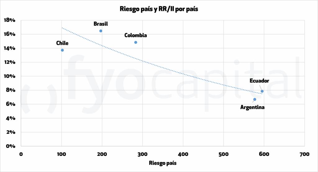 De continuarse el proceso de acumulación, acompañado de una normalización de las demás variables macro y la aprobación de las reformas clave, el riesgo país debería abrirse camino hacia niveles inferiores, buscando por lo menos, los mínimos alcanzados en la actual administración de 550 puntos. En línea con este análisis, un ejercicio interesante es ver los niveles de reservas de países comparables de la región y su nivel de riesgo país, para ver hacia donde nos dirigimos.