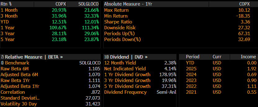 Por este cuello de botella en la producción del metal prevista para 2026 traemos la idea de tomar posición en el cedear COPX (Global X Copper Miners ETF), el cual es un ETF que sigue los rendimientos de una cartera compuesta de empresas mineras de cobre. Este ETF está compuesto por empresas como KGHM Polska, Lundin Mining, Southern Copper, Antofagasta Plc., Glencore, entre otras.