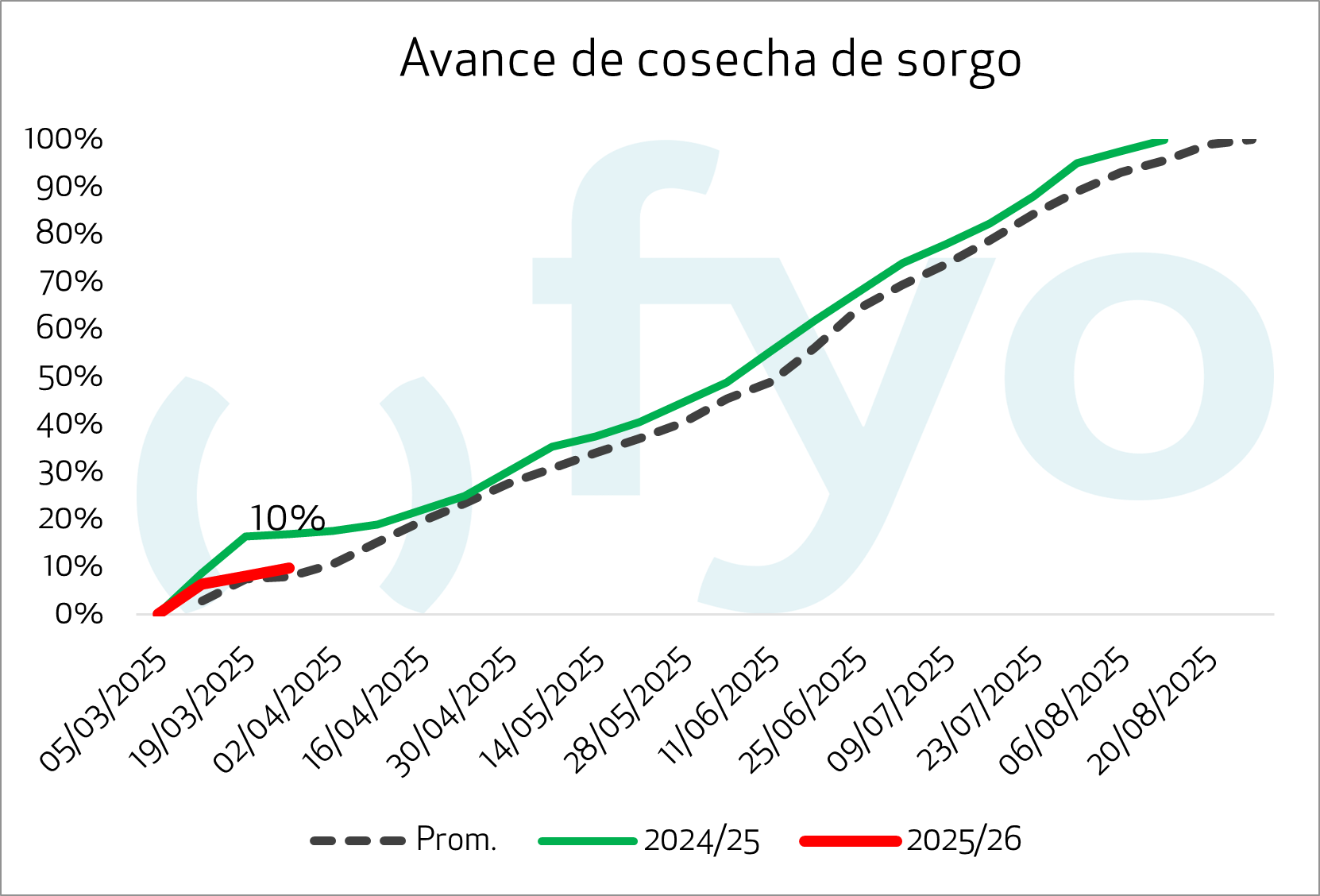 - La cosecha nacional alcanza el 9,8 % del área apta, con un rinde promedio de 44,4qq/Ha.