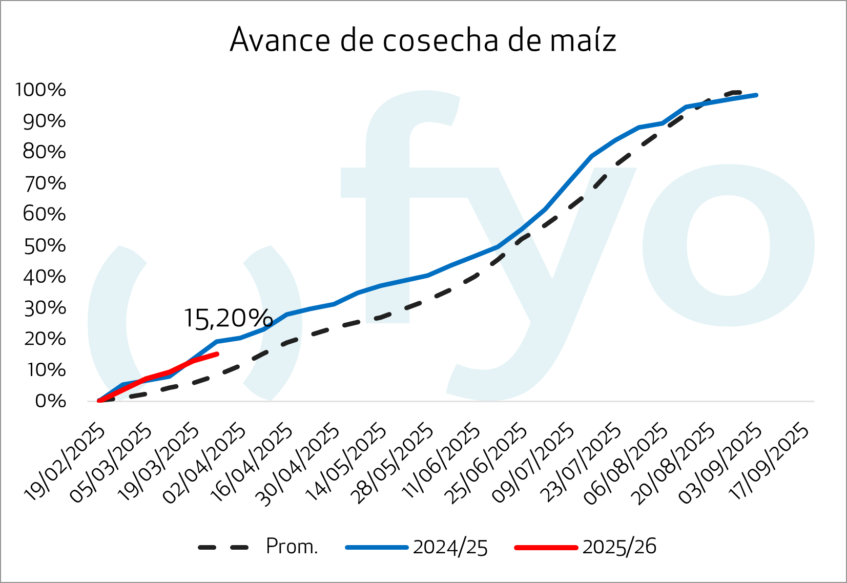 - El avance nacional de cosecha es del 15,2 %, tras un progreso intersemanal de 2,2 pp..