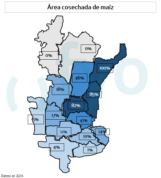 - Se registran demoras en la recolección en el Centro-Norte de Santa Fe y el Centro-Este de Entre Ríos como consecuencia de los excesos hídricos.