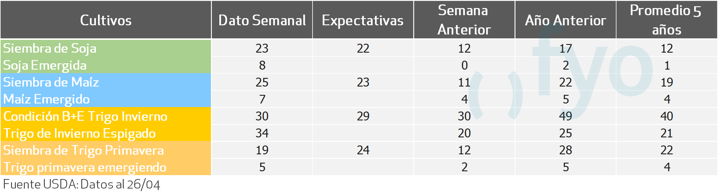 ESTADO DE CULTIVOS NORTEAMERICANOS AL 26 DE ABRIL: