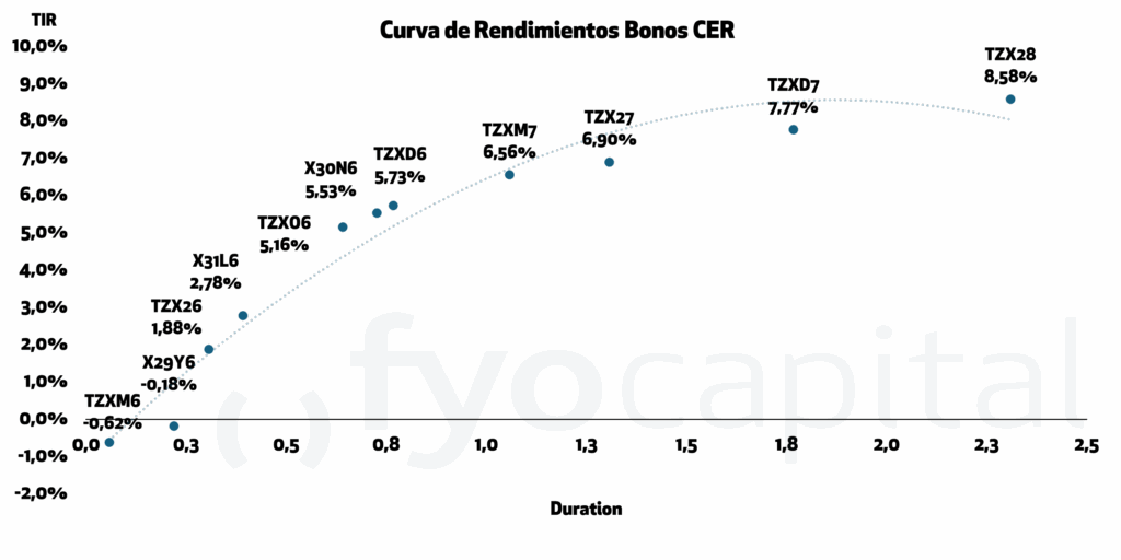 Sin embargo, este sostén al tipo de cambio también se explica por operaciones del BCRA en los mercados dollar linked. Con un volumen operado del bono dólar linked mas cercano (D30A6) de más de 325 millones de nominales el martes, y un promedio de 162 millones diarios esa semana, podemos inferir que el Gobierno estuvo ofreciendo cobertura cambiaria a tasas positivas, otorgando un premio por dolarizarse más adelante en el tiempo, tal como ha hecho en ocasiones anteriores. Además, a lo largo de la semana el interés abierto de dólar futuro creció en alrededor de 1.100 millones de dólares.