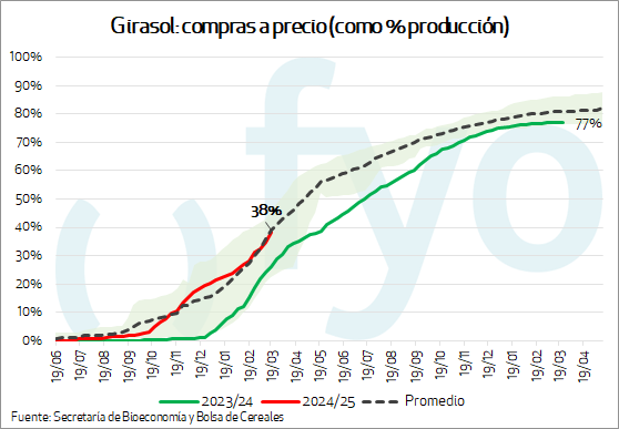 El tercer producto que mostró un importante volumen negociado fue el girasol, que con 138.000 tt. entre negocios nuevos a precio y fijaciones, marcó un nuevo record semanal para la campaña.