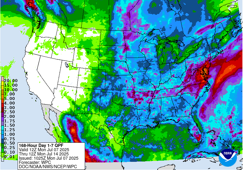 - La calificación del maíz estadounidense “bueno a excelente” subió 1 punto porcentual al 74%, superando la expectativa del mercado (73%) y alcanzando el nivel más alto para esta época del año desde 2018. El pronóstico de clima favorable para la etapa crítica de polinización refuerza las expectativas de altos rendimientos, presionando los precios a la baja.