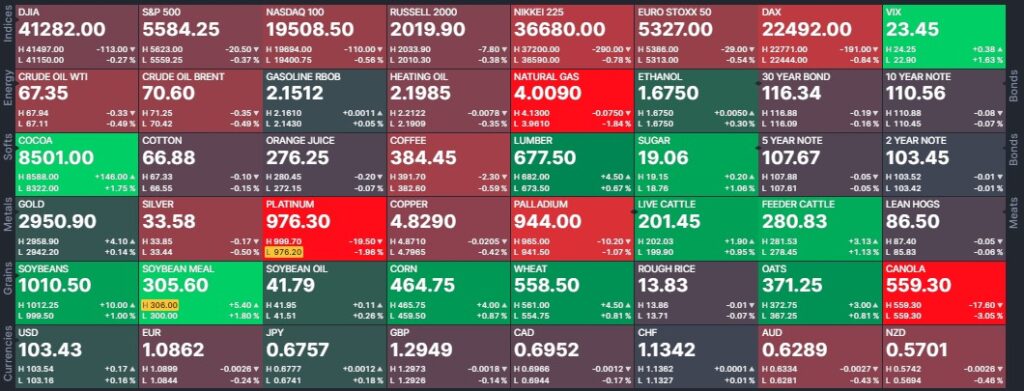 financieros bonos del tesoro de EEUU, bonos eurodollar, y tasas de la reserva federal de EEUU. Monedas índice dólar, libra, dólar canadiense, yen japonés, franco suizo,euro, dólar australiano, peso mejicano, dólar de Nueva Zelanda, rand de Sudáfrica y Rublo ruso.
