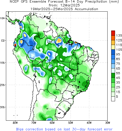 • Conab aumentó 1,35 Mt la proyección de producción de Brasil en 167,37 Mt.