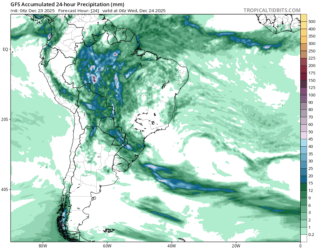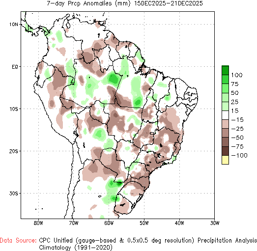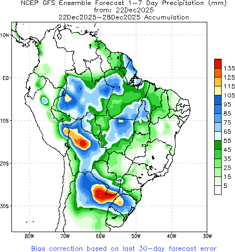 - La consultora AgRural elevó su pronóstico para la cosecha 2025/26 de Brasil a 180,4 millones de toneladas (Mt) respecto de los 178,5 Mt estimados en noviembre, superando los 171,5 Mt producidos en la campaña anterior dado las condiciones climáticas favorables en diciembre.