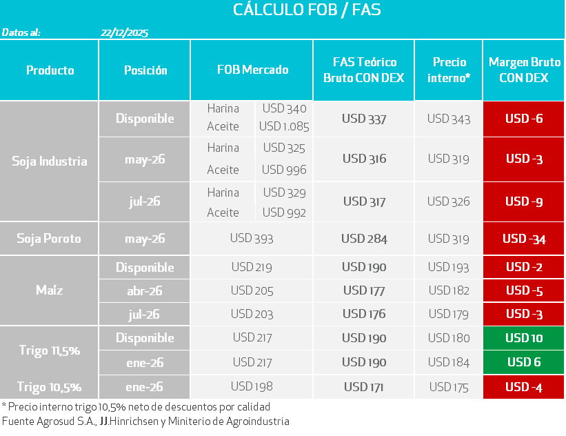 - Indonesia confirmó que el plan para implementar la mezcla obligatoria al 50% (B50) comenzará a aplicarse el segundo semestre de 2026 lo que suma condimento alcista a los aceites, con la palma aportando soporte a la suba del aceite de soja.
