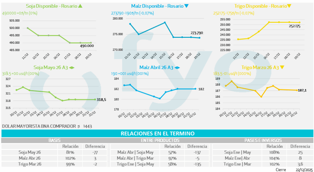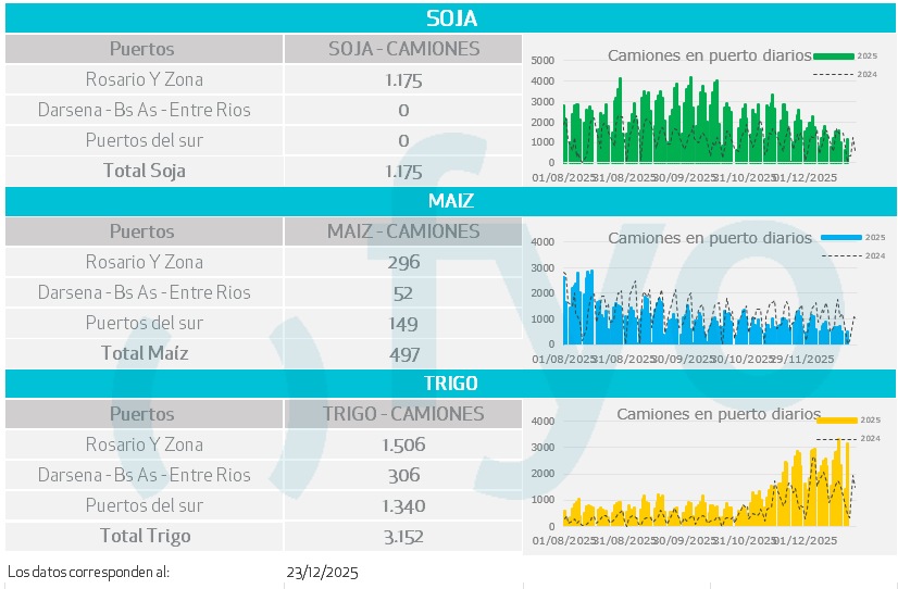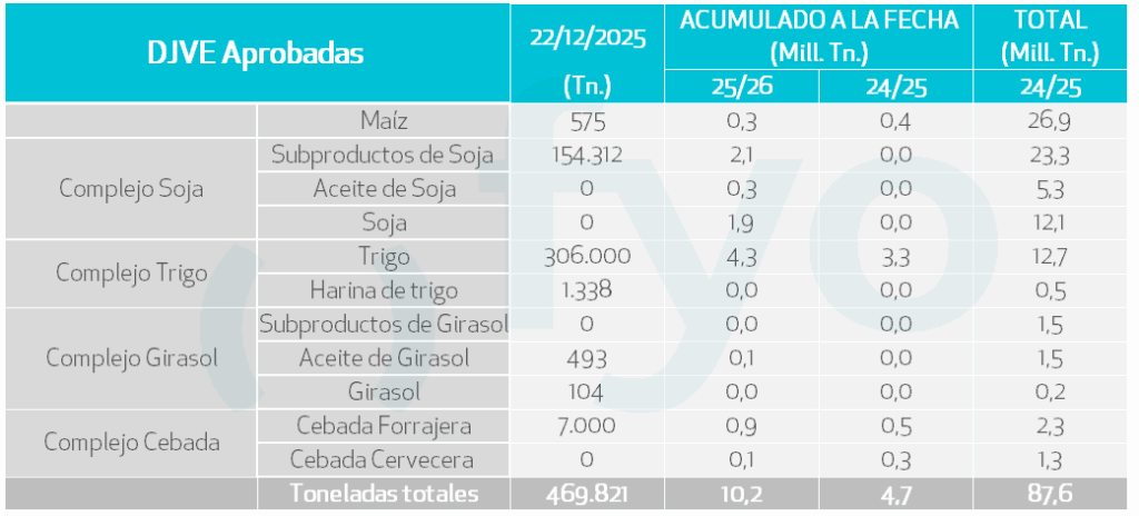 - Las exportaciones de trigo blando de la Unión Europea muestran un ligero retraso respecto al año pasado. De acuerdo con la Comisión Europea, los envíos sumaron 10,8 Mt al 21 de diciembre, frente a los 11 Mt registrados en la misma fecha del año anterior.