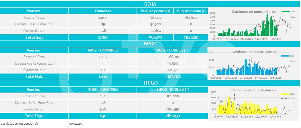Buques: partiendo de los buques anunciados por las agencias marítimas o line-up se calculan las toneladas a cargar de cada uno de los distintos productos en cada puerto.
