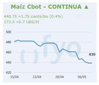 - Los futuros de maíz muestran suben en Chicago, si bien se mantienen próximos al mínimo de seis semanas.