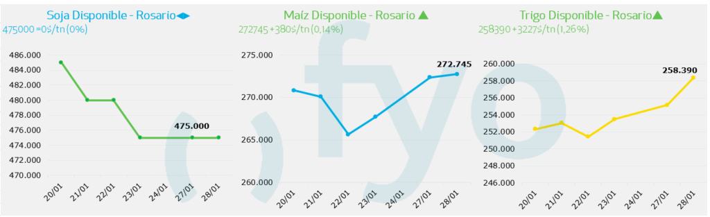 - Por soja en Rosario, se negoció en $475.000 la mercadería física con pago.