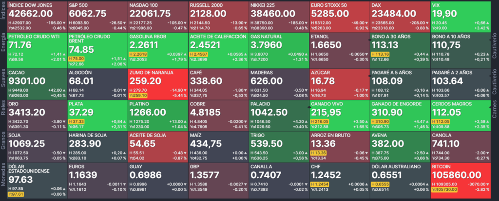 Índices, S&P500, NASDAQ 100, dow jones, DJIA.russell, S&P midcap, índice de volatilidad de S&P 500 VIX, índice de commodities S&P GSCI.