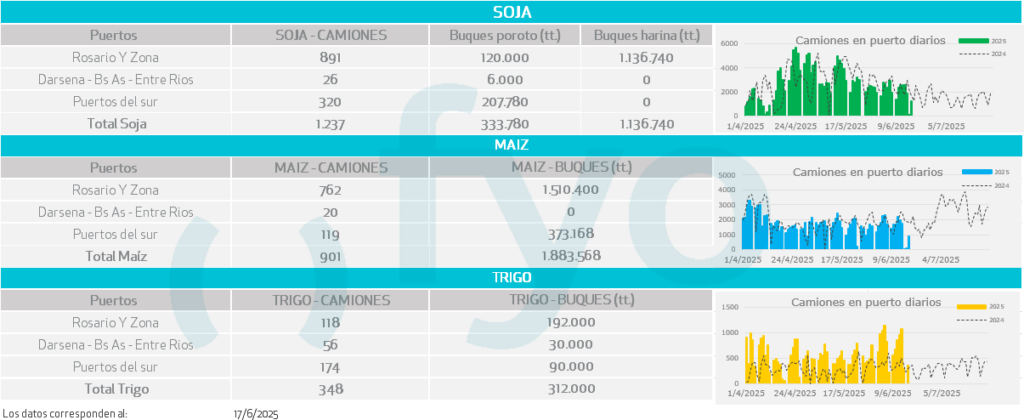Buques: partiendo de los buques anunciados por las agencias marítimas o line-up se calculan las toneladas a cargar de cada uno de los distintos productos en cada puerto.