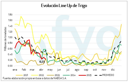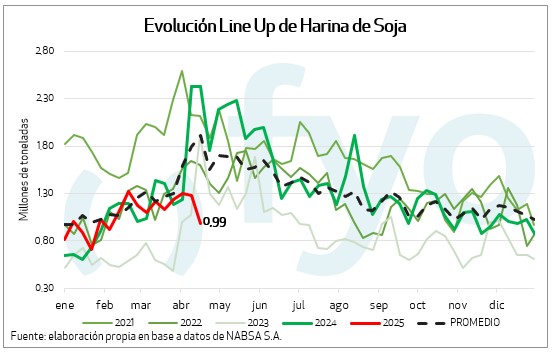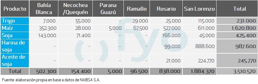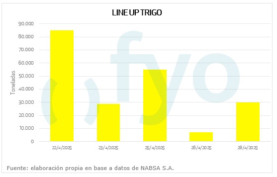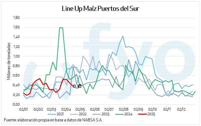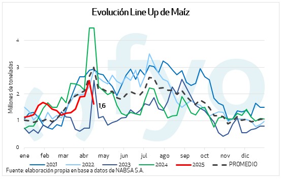 La agencia Nabsa reportó los compromisos de embarque hasta el 21 de abril, destacando el importante descenso en el line-up de maíz hasta 1,6 Mt, 600.000 Tn debajo del promedio para la fecha.