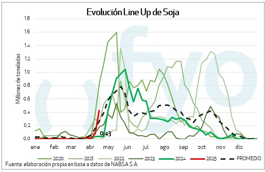 Como contracara se observa un aumento en los compromisos de soja, pasando de 80.000 Tn la semana pasada a 430.000 Tn el 21/4, superando así el promedio para la fecha.