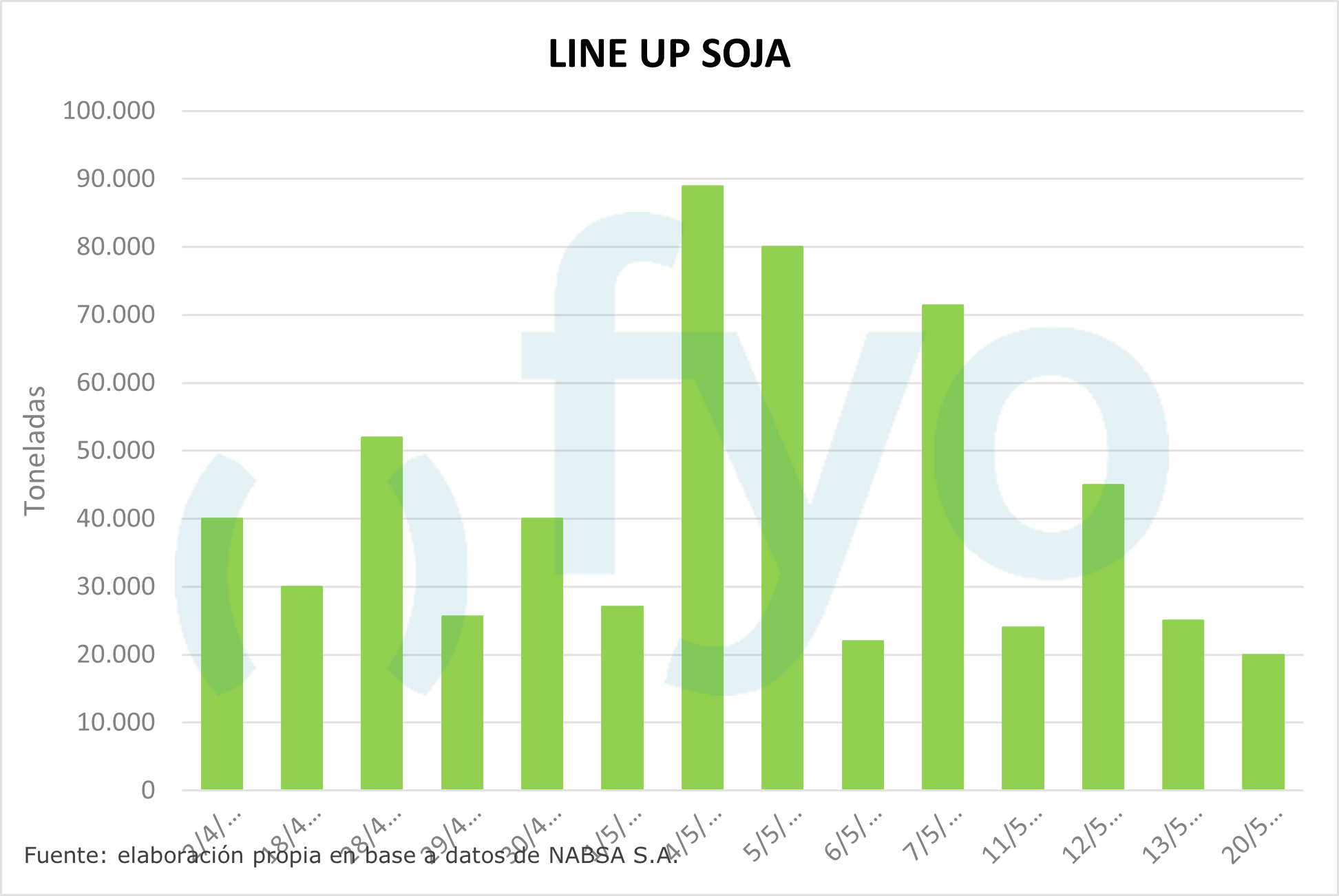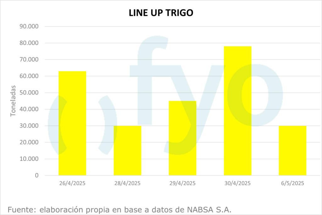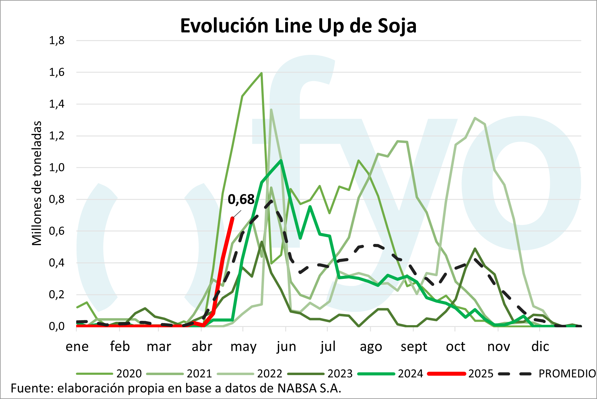 El line-up de maíz continúa desacelerándose, con un volumen de 1,5 Mt, por debajo del promedio de 2,2 Mt para esta época del año.