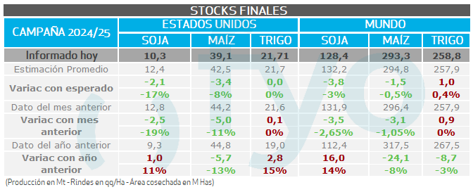 Jornada con datos importantes para los merc ados de granos, con actualización mensual de Oferta y demanda mundial, Informe de stock trimestrales para EE.UU. e Informe de área sembrada de trigo Invierno para la nueva campaña norteamericana.
