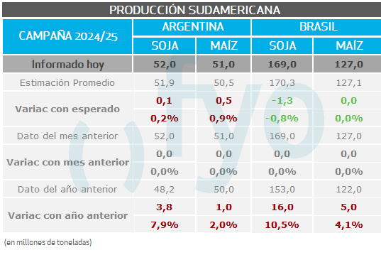 Sudamerica por su parte, no vio modificaciones en las estimaciones de maíz y soja tanto para Brasil como para Argentina.