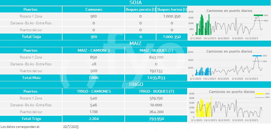 Buques: partiendo de los buques anunciados por las agencias marítimas o line-up se calculan las toneladas a cargar de cada uno de los distintos productos en cada puerto.