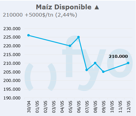 - Por maíz puesto en Up River, la disponible valió hasta USD 188.