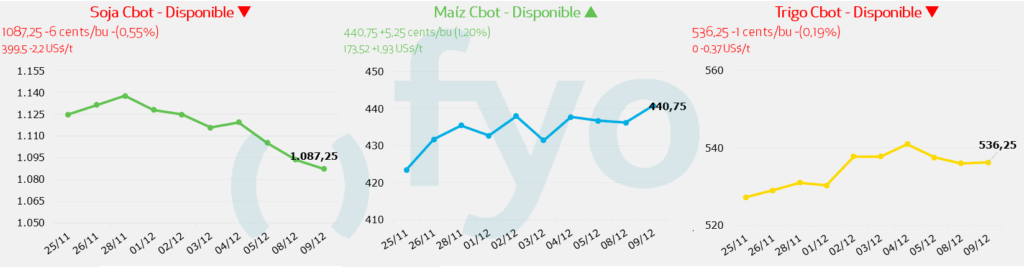 - El gobierno argentino anunció una rebaja en los derechos de exportación del trigo del 9,5% al 7,5%. Actualmente, el trigo argentino es el origen más barato del mundo.