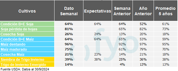 ESTADO DE CULTIVOS NORTEAMERICANOS AL 30 DE SEPTIEMBRE: