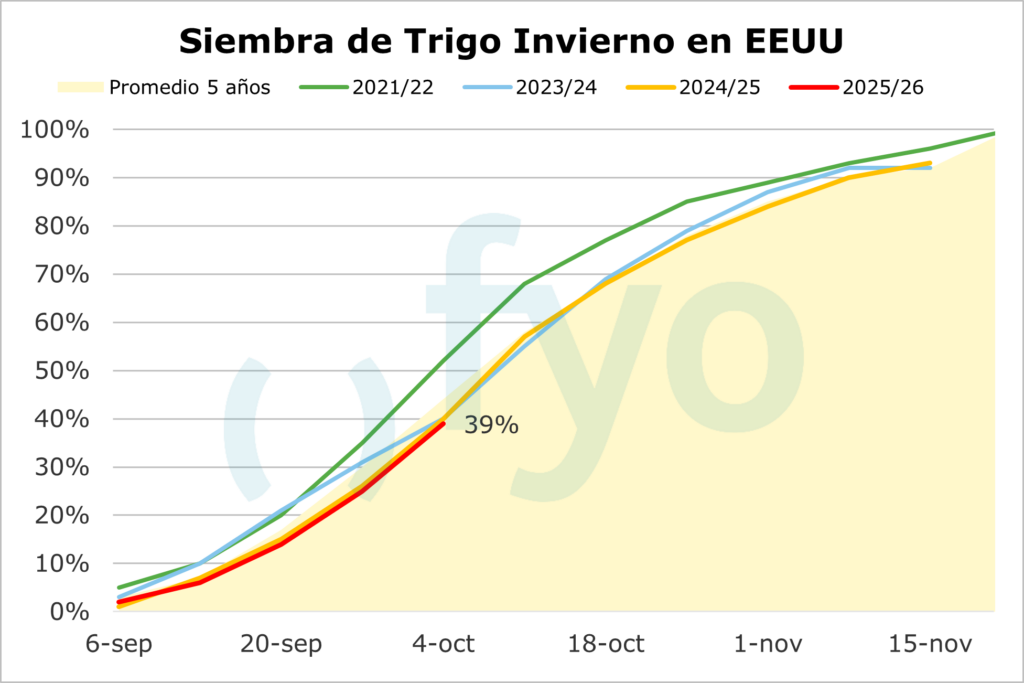 El USDA publicó el informe sobre la condición de los cultivos. La condición buena/excelente de la soja permanece en el 64% de la superficie, avanzando en la cosecha en 26%, por encima de los promedios. Sobre el maíz, las labores de cosecha avanzan al 21%, por debajo de las expectativas en el 23%. En cuanto al trigo, la siembra de invierno avanza al 39%.