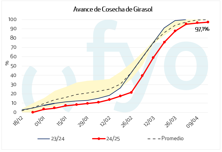 - Cosecha 97,1%, avance semanal 0.8%.