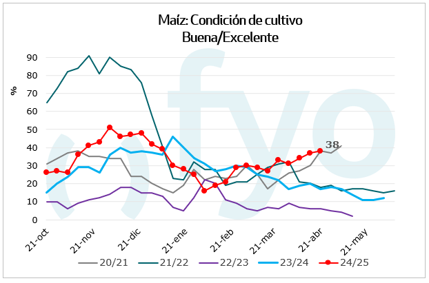 - Todo el centro del área agrícola espera rindes por encima de las proyecciones, lo que compensaría las pérdidas adicionales del norte.