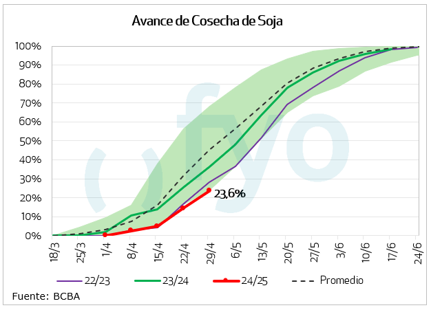 La cosecha continúa dando prioridad a la recolección de soja, esperando además alcanzar humedad óptima en los maíces del centro-sur bonaerense afectadas por excesos hídricos. - Recolección de los planteos tardíos se prevé a partir de mediados de mayo