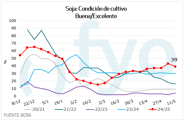 - 61 % de la soja de segunda ha alcanzado la madurez fisiológica, y el 79,7 % de los lotes se encuentra en condición Normal a Excelente.