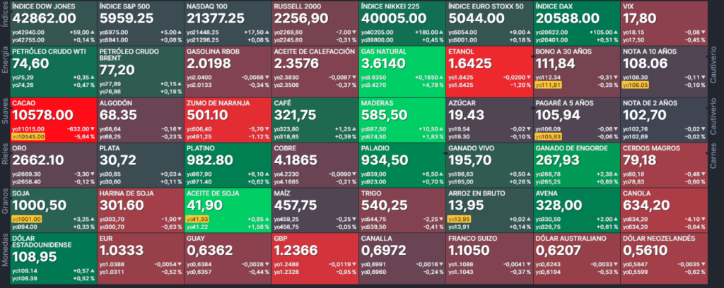 Índices, S&P500, NASDAQ 100, dow jones, DJIA.russell, S&P midcap, índice de volatilidad de S&P 500 VIX, índice de commodities S&P GSCI.
