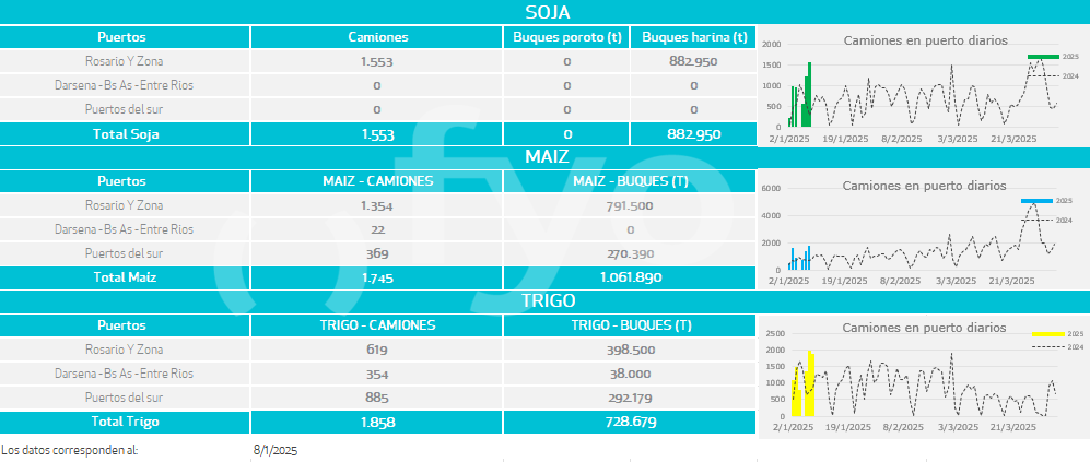 Buques: partiendo de los buques anunciados por las agencias marítimas o line-up se calculan las toneladas a cargar de cada uno de los distintos productos en cada puerto.