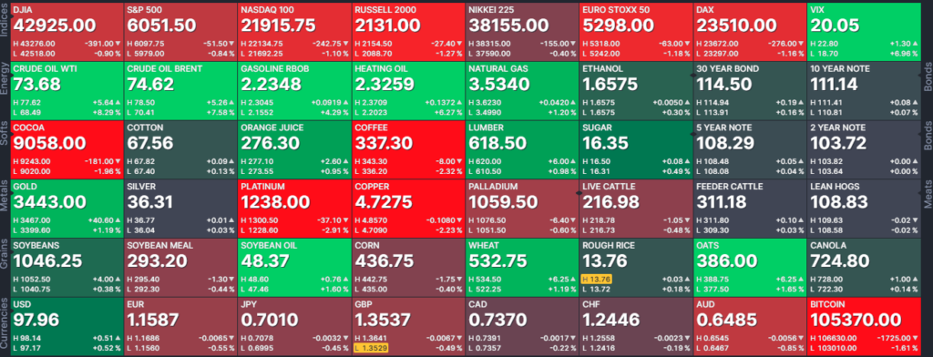 financieros bonos del tesoro de EEUU, bonos eurodollar, y tasas de la reserva federal de EEUU. Monedas índice dólar, libra, dólar canadiense, yen japonés, franco suizo,euro, dólar australiano, peso mejicano, dólar de Nueva Zelanda, rand de Sudáfrica y Rublo ruso.