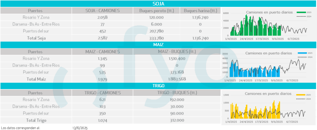 Buques: partiendo de los buques anunciados por las agencias marítimas o line-up se calculan las toneladas a cargar de cada uno de los distintos productos en cada puerto.