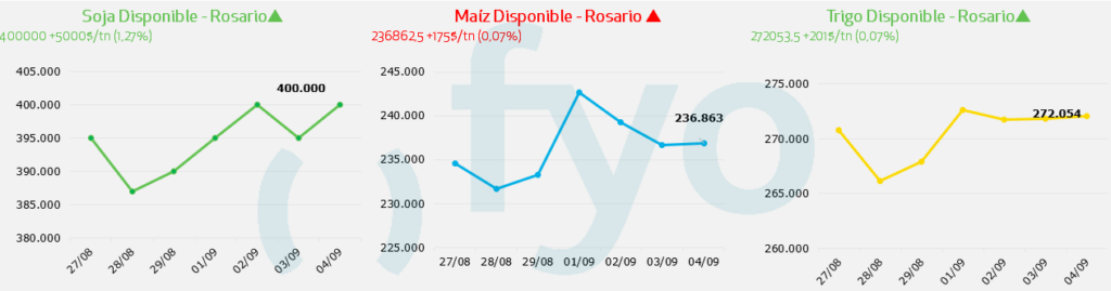 - Por soja puesta física y fijaciones fueron se pagó $400.000 generalizado en Rosario y el sur.