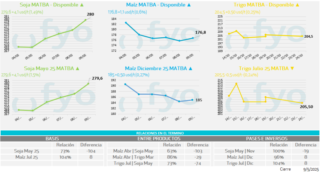 • El complejo soja muestra ganancias, con el aceite negociándose con subas de más de un 4%, acompañando las mejoras del petróleo que también encuentran impulso en esta noticia.