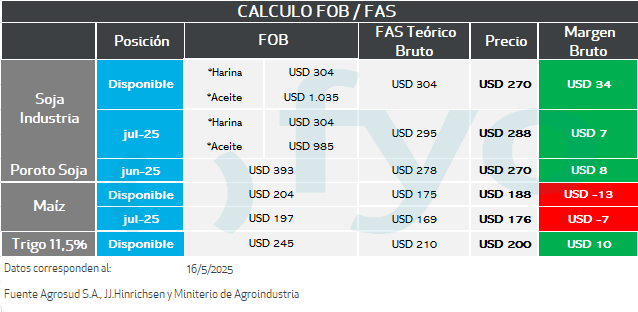 En el caso de la posición fábrica se parte de los precios FOB de los subproductos, luego se les aplica al valor del aceite, el porcentaje de rendimiento del poroto de soja para la extracción del mismo, y lo mismo en harina. Se suman estos valores, y se descuenta el costo de molienda estimado. El resultante es la capacidad teórica de la fábrica.