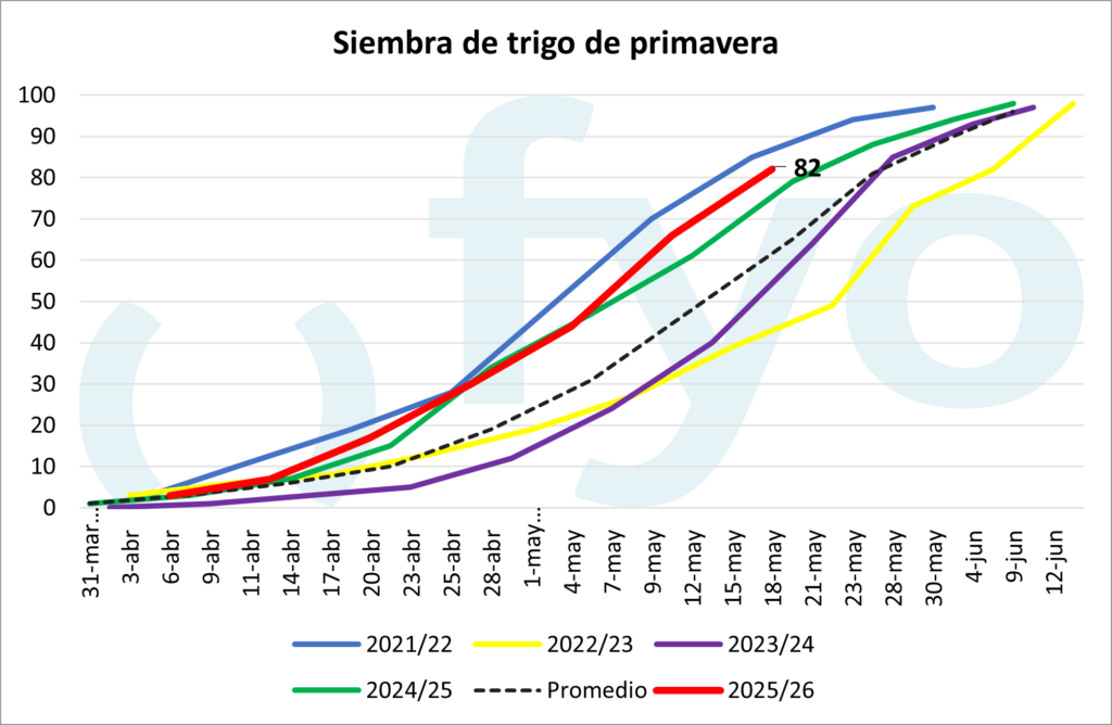 Por su parte, la siembra de trigo de primavera avanzó hasta el 82 %, por encima del promedio (65 %).