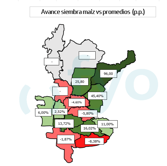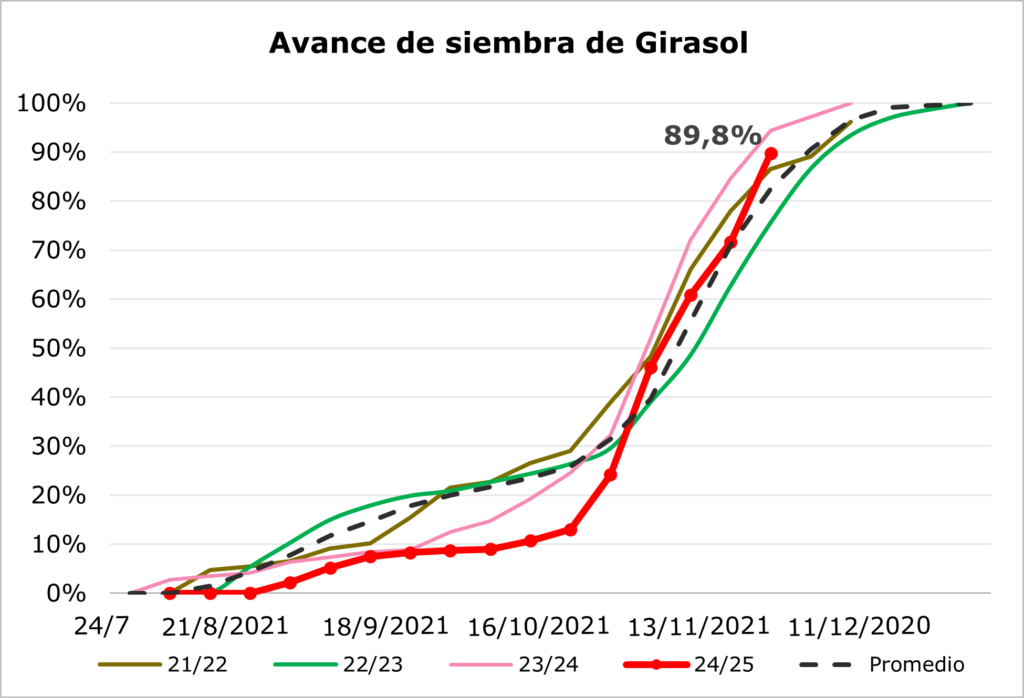 - Se aceleró la siembra sobre el sur del área agrícola, avanzando al 89,8%( +18,1 p.p.).