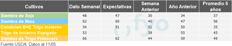 ESTADO DE CULTIVOS NORTEAMERICANOS AL 11 DE MAYO: