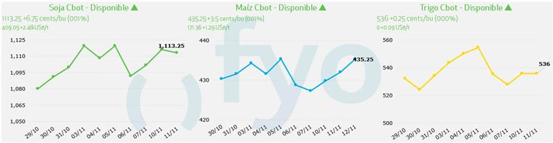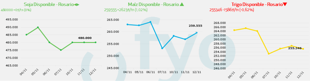 - En cuanto al mercado de nueva cosecha, no tuvimos actividad en el segmento forward. El mercado A3 ajustó con subas para la soja, cerrando Mayo en USD 322,9
