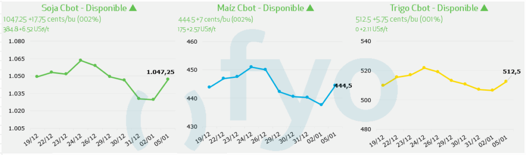 - El mercado se mantiene a la espera de la publicación de datos clave sobre oferta y demanda global, así como de los inventarios trimestrales de granos en EE. UU. al 1 de diciembre, que el Departamento de Agricultura de los Estados Unidos (USDA) presentará el 12 de enero.
