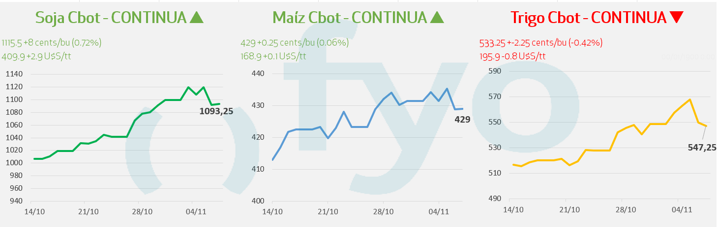 - FranceAgriMer reportó que la cosecha de maíz en Francia alcanzó el 90%, arriba del promedio de 83%. 59% del cultivo presenta condición bueno/excelente, significativamente por debajo del 76% registrado en la misma fecha del año anterior.