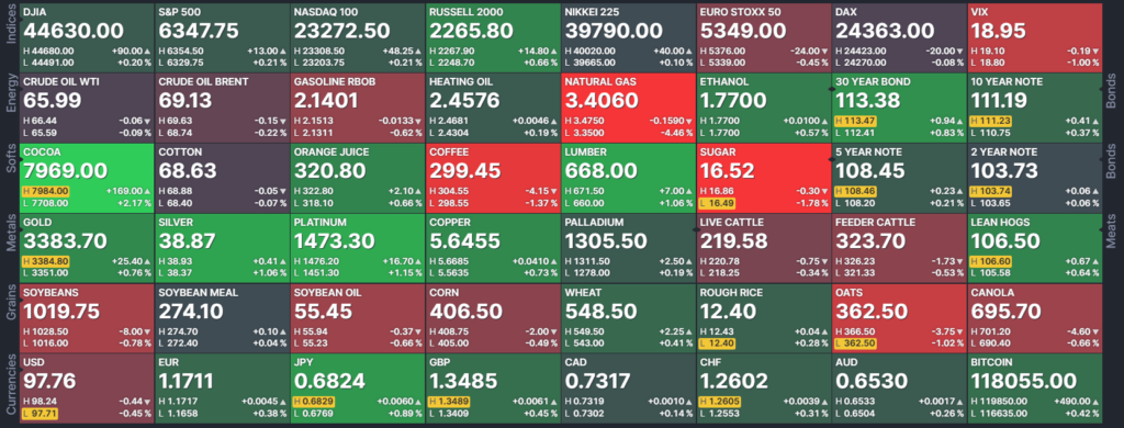financieros bonos del tesoro de EEUU, bonos eurodollar, y tasas de la reserva federal de EEUU. Monedas índice dólar, libra, dólar canadiense, yen japonés, franco suizo,euro, dólar australiano, peso mejicano, dólar de Nueva Zelanda, rand de Sudáfrica y Rublo ruso.
